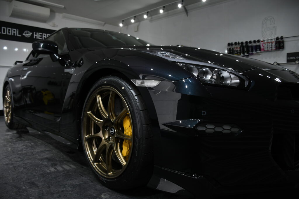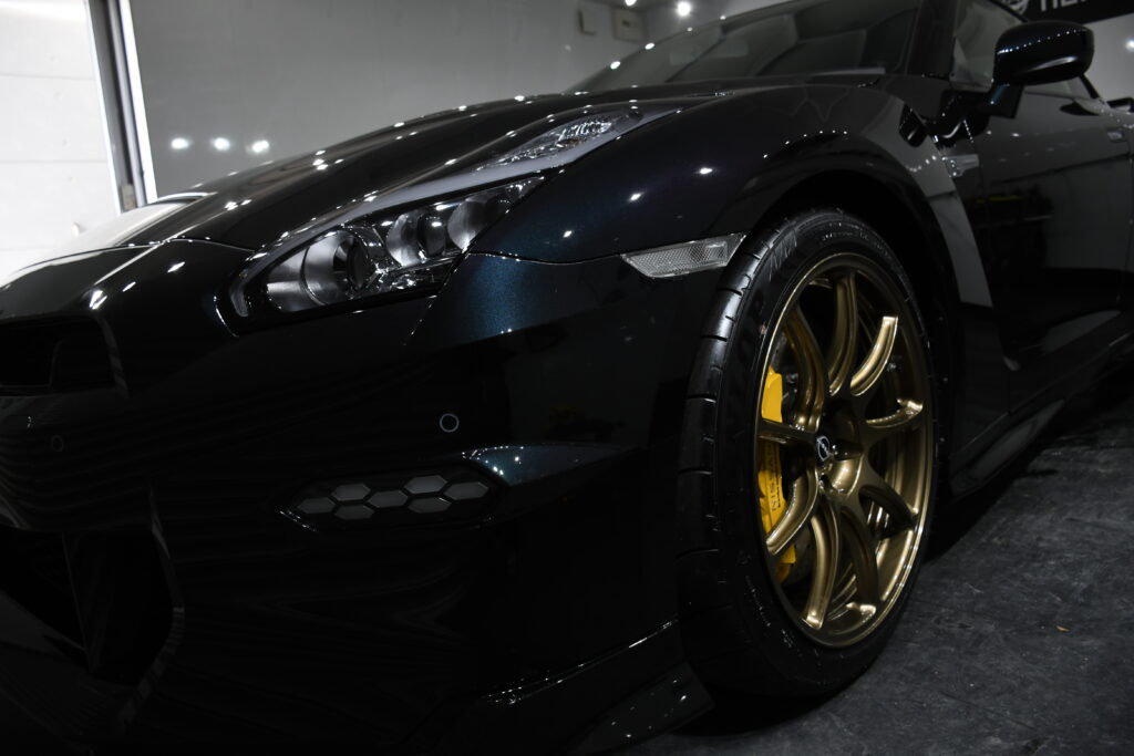 施工に使用したのは、自己修復機能を備えた高性能プロテクションフィルム。透明度が極めて高く、GT-R特有のシャープなプレスラインを損なうことなく保護性能を発揮します。